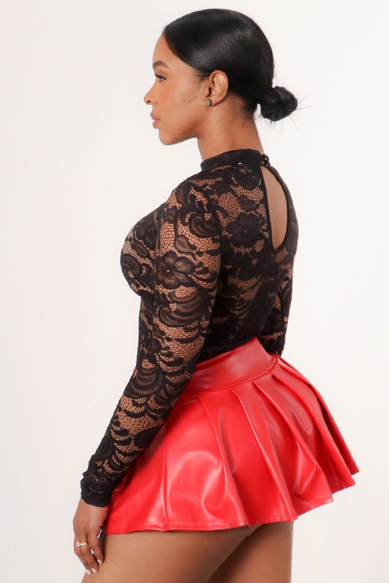 Elevate your wardrobe with this sophisticated long sleeve lace bodysuit in classic black. Crafted from delicate lace fabric, this piece seamlessly transitions from day to night, offering versatile styling options whether layered under sheer tops or worn as a standalone statement piece. The long sleeves provide elegant coverage while the fitted silhouette flatters your frame. Perfect for creating polished, fashion-forward looks that exude confidence and refinement. A timeless essential that deserves a place in every style-conscious closet.